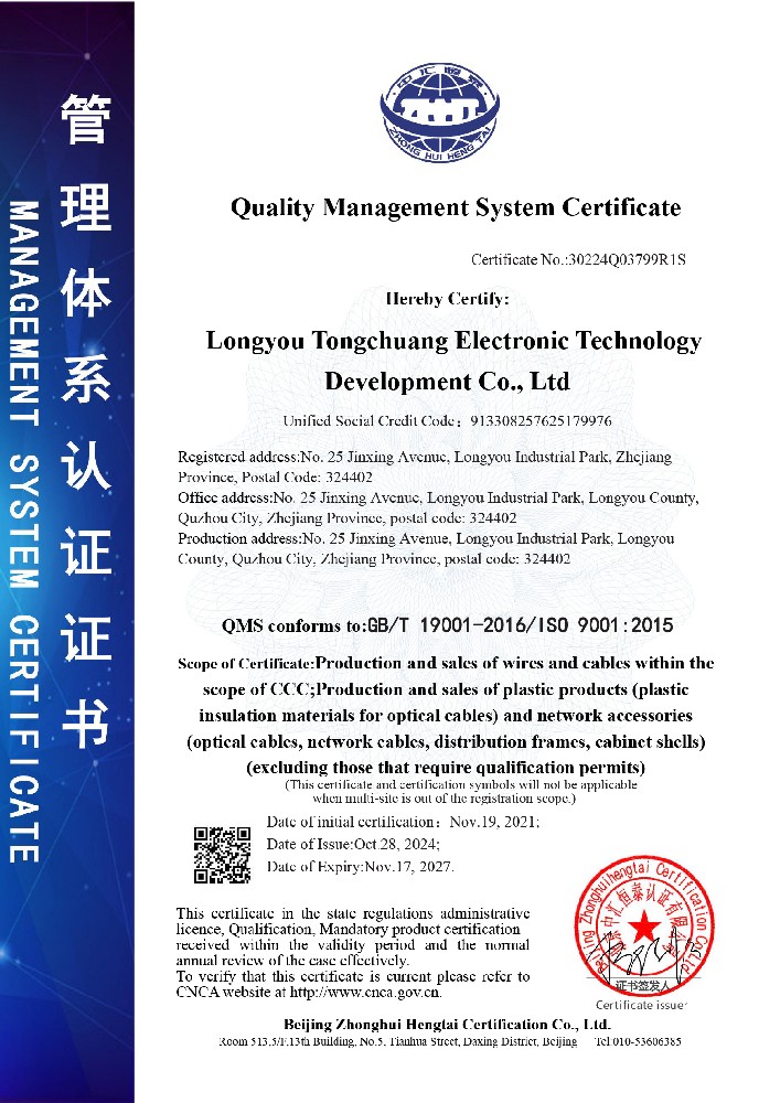 龍游同創電子技術開發有限公司成立于2004年,占地面積58000平方米,其中廠房使用面積96000多平方米。注冊資金2000萬元,總投資1.5億元,是一家集研發、生產、銷售、服務于一體的通信光電纜、綜合布線、安防布線等5G通信產品的專業生產廠商。公司主要產品包括:光纜、數據電纜、電源線、排線、機箱機柜、光電配件等,6大類1000多個品種,廣泛應用于各類通信系統,為全國通信事業的發展做出了積極貢獻。 公司擁有國內先進的自動化數據電纜生產設備48套,光纜、排線、電源線等生產設備56套,2020年成...